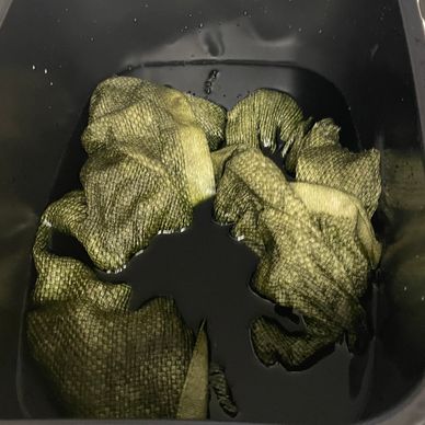 Dyeing is my way of giving it life. From the careful selection of color to the alchemy of mixing and stirring dyes, I search for the perfect hue. One that breathes light into the work.