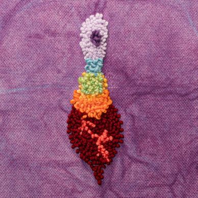 It is a meditative process that aligns with the chakras and the way I give them life. It begins with an emotion, transforms into a drawing, and ultimately becomes a rug painting